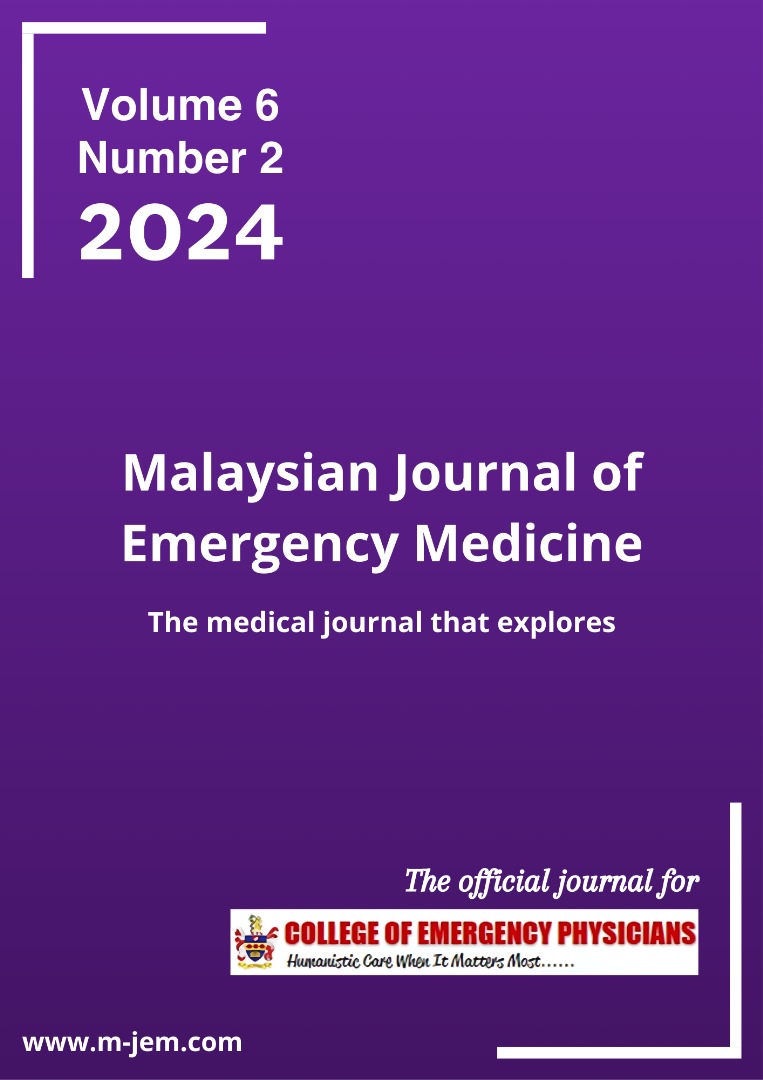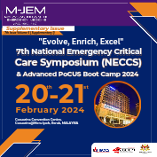 Vol. 6 No. 1 (2024)Compiled abstracts from the 7th National Emergency Critical Care Symposium (NECSS) and Advanced PoCUS Boot Camp 2024 that was held at Casuarina Convention Centre, Casuarina@Meru, Ipoh, Perak on 21th to 21st February 2024.